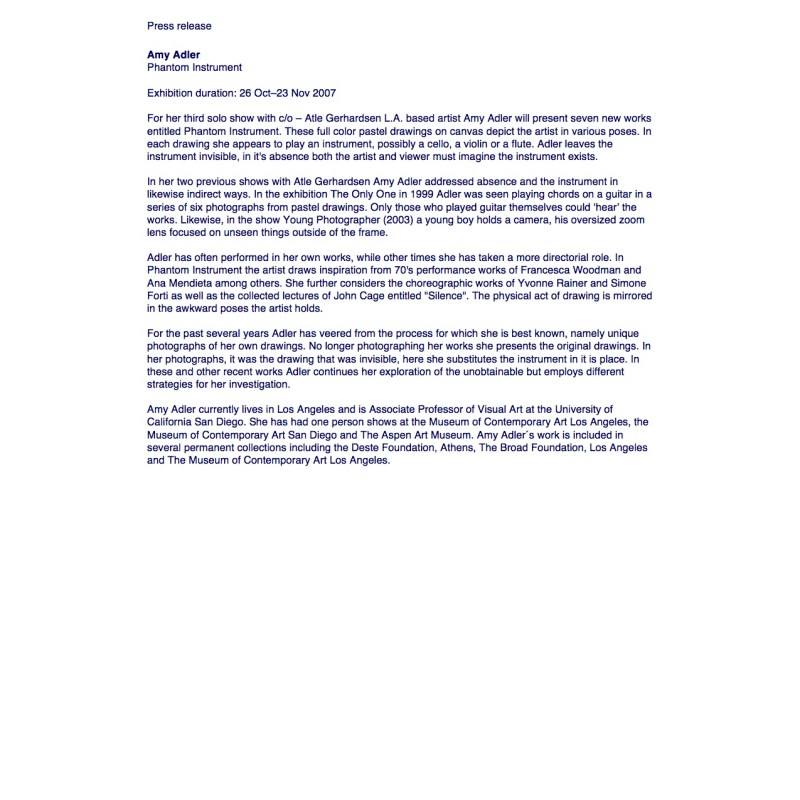 MUSEUM OF CONTEMPORARY ART SAN DIEGO (RACHEL TEAGLE. “CERCA SERIES: AMY ADLER”, 2006) MUSEUM OF CONTEMPORARY ART SAN DIEGO (RACHEL TEAGLE. “CERCA SERIES: AMY ADLER”, 2006)