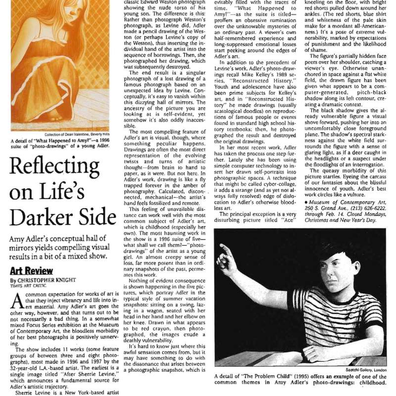 REFLECTING ON LIFE’S DARKER SIDE: AMY ADLER (THE LOS ANGELES TIMES, CHRISTOPHER KNIGHT, DECEMBER 1998) REFLECTING ON LIFE’S DARKER SIDE: AMY ADLER (THE LOS ANGELES TIMES, CHRISTOPHER KNIGHT, DECEMBER 1998)